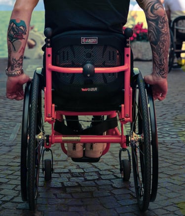 Produzione di parti in fibra di carbonio personalizzate per Offcarr, destinate al settore delle carrozzine per la mobilità assistita.